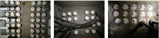 安裝時將封堵法蘭初步裝配在一起,套在電纜上并將法蘭推入電纜管內(nèi)合適位置后,輪流分多次將螺栓均衡逐步緊固到位即可。緊固時需用套筒扳手緊固,若有條件*好使用電動套筒扳手緊固。如果封堵法蘭與電纜或與電纜管之間縫隙較大時,可加膠帶纏繞解決或使用密封膠解決。該產(chǎn)品的特點也是安裝方便、密封可靠和成本較低。工程案例如下:
