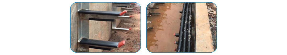 工程案例:圖中支架端部翹起部分紅色平面護(hù)套