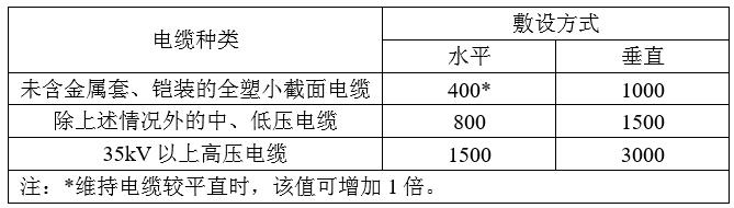 6.1.2直接支持電纜的普通支架(臂式支架)、吊架的允許跨距宜符合表6.1.2的規(guī)定。