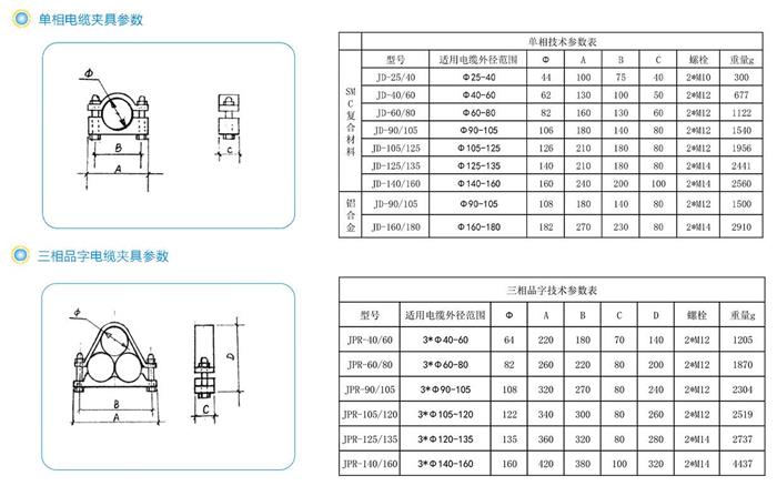 邢臺(tái)順安電力配件有限公司電纜夾具共有三大類,分別是復(fù)合材料電纜夾具、單相鋁合金電纜夾具(抱箍)和接地電纜夾具。目前單相電纜夾具有16種、三相品字電纜夾具有6種。照片及參數(shù)表如下: