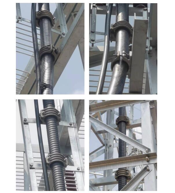 (二)再將底座安裝到鐵塔或電纜支架上并緊固(圖中角鋼代表鐵塔或電纜支架角鋼)。